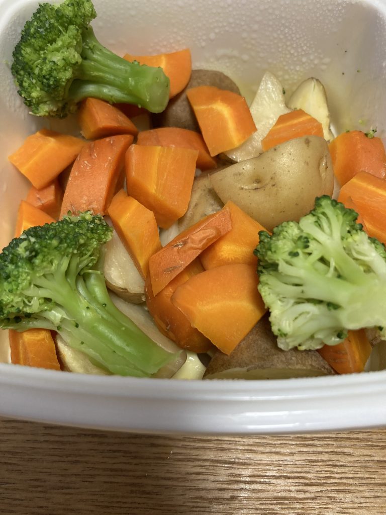 今日はじゃがいもが安く手に入ったので、じゃがいも、人参、ブロッコリーを蒸しました。